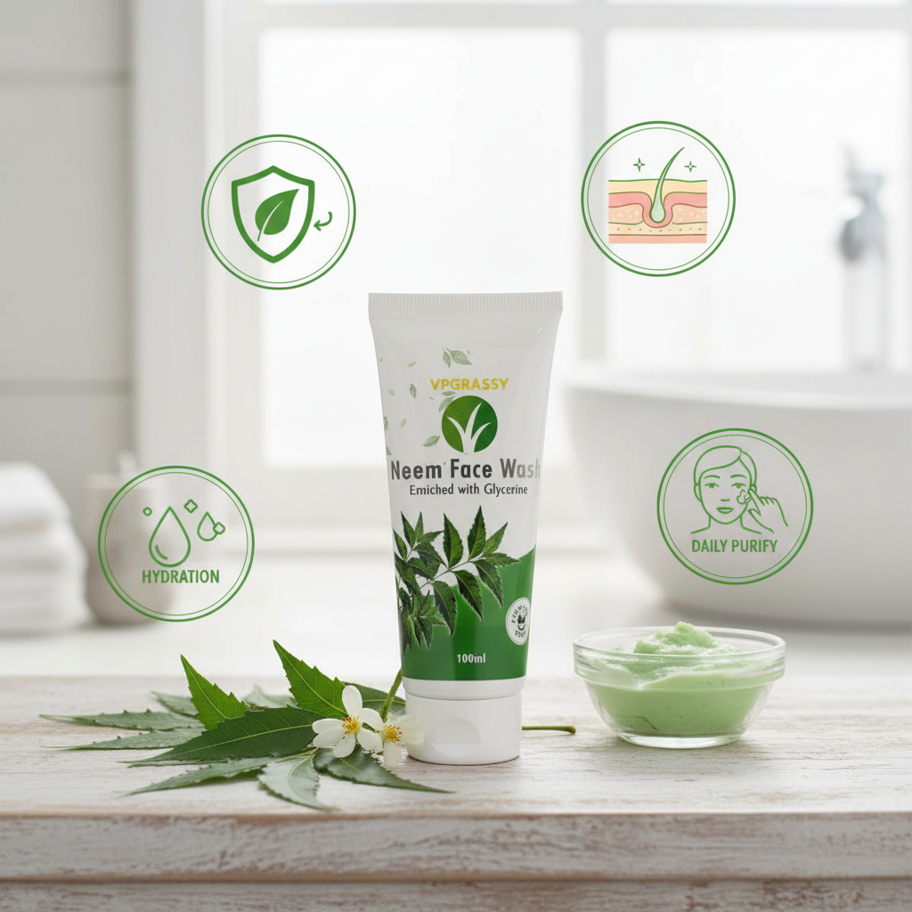 Experience the power of traditional Ayurveda with Ayurvedic Neem Face Wash, a gentle yet effective herbal cleanser designed to keep your skin clean, clear, and healthy. Specially formulated for oily, acne-prone, and combination skin, this face wash uses the natural antibacterial and purifying properties of Neem to fight acne-causing bacteria while maintaining the skin’s natural moisture balance. Neem has been trusted in Ayurveda for centuries for its ability to detoxify the skin, reduce pimples, control excess oil, and prevent breakouts. This face wash deeply cleanses pores, removing dirt, pollution, and excess sebum that lead to acne and dull skin. Its soothing herbal formula helps calm irritation, redness, and inflammation, leaving your skin feeling refreshed and comfortable after every wash. Unlike harsh chemical cleansers, this Ayurvedic Neem Face Wash is gentle on the skin and suitable for daily use. It cleanses without over-drying, making it ideal for people who struggle with oily skin, frequent pimples, blackheads, or uneven texture. With regular use, it helps improve overall skin clarity, smoothness, and natural glow. The lightweight gel texture spreads easily, rinses off quickly, and leaves no sticky residue. Suitable for men and women, this herbal face wash supports healthy skin by promoting a clear complexion and long-term scalp-free skin balance. Make Ayurvedic Neem Face Wash a part of your daily skincare routine and enjoy clean, refreshed, and naturally glowing skin—the Ayurvedic way.