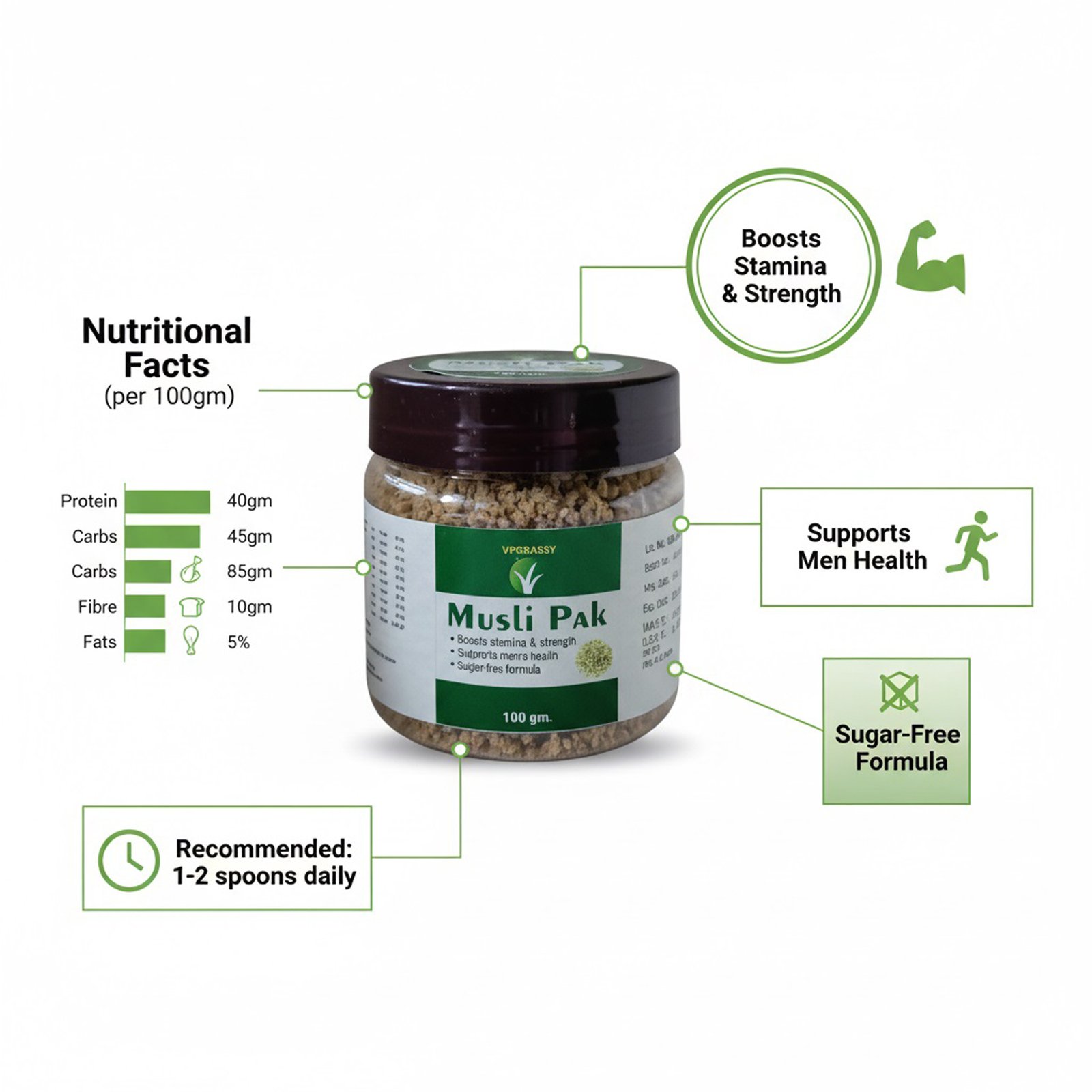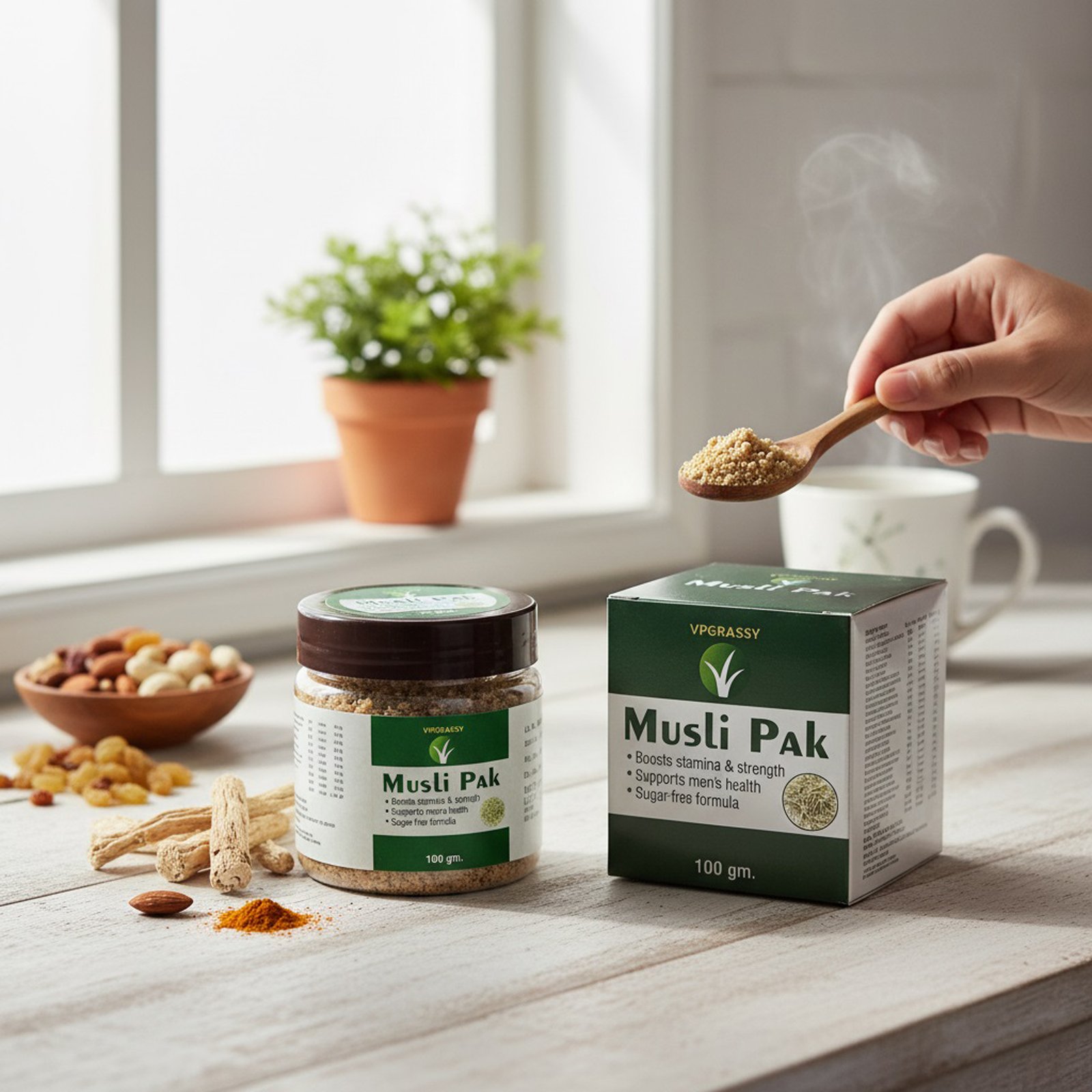 VPGRASSY Natural Musli Pak 100gm | Ayurvedic Energy & Vitality Supplement for Men | Stamina & Strength Support | Sugar-Free Herbal Formula