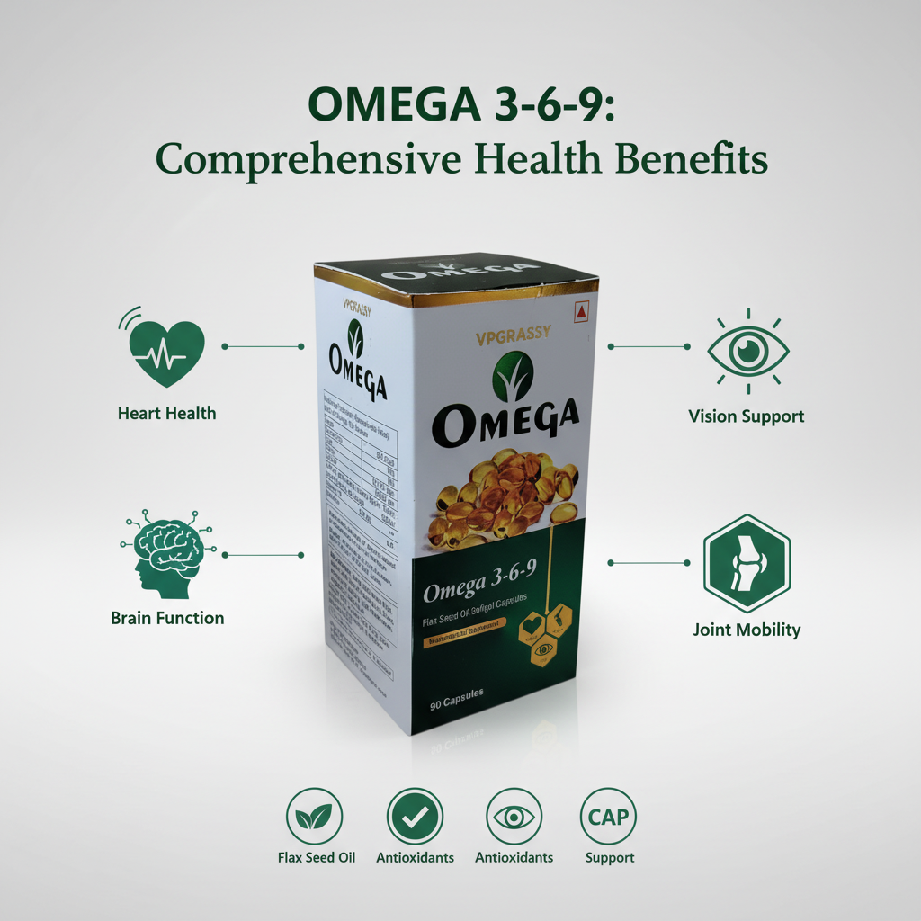 Support your overall wellness with VPGRASSY Natural Omega Capsules – 60 Capsules, a powerful blend of Omega 3, Omega 6, and Omega 9 fatty acids extracted from natural, plant-based sources. These essential fatty acids promote heart health, support brain function, improve joint flexibility, and boost overall vitality. Omega nutrients are known to reduce inflammation, maintain healthy cholesterol levels, enhance immunity, and improve skin and hair health. Formulated for both men and women, this daily supplement helps balance your body’s essential fats for long-term wellness. Safe, effective, and easy to consume, VPGRASSY Natural Omega Capsules are ideal for individuals seeking improved cardiovascular support, cognitive care, joint mobility, and overall nutritional balance.
