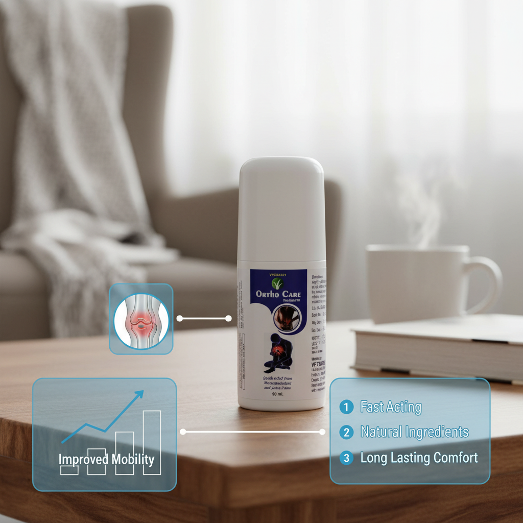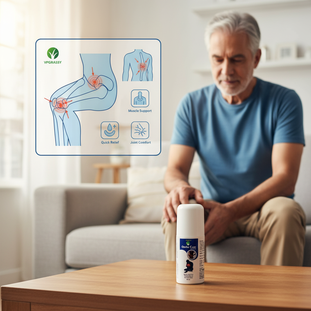 VPGRASSY Ortho Care Roll-On is a powerful Ayurvedic pain-relief formula specially designed to provide instant comfort from joint and muscle pain. Whether you’re dealing with everyday body stiffness, arthritis discomfort, or sudden sprains, this roll-on targets pain at its root with its fast-absorbing herbal blend. The unique deep-penetration technology ensures that the active ingredients quickly reach the affected muscles and joints, helping reduce inflammation, swelling, and stiffness. Its mess-free and non-sticky roll-on bottle provides easy, hygienic application and makes it a perfect companion for people with an active lifestyle. Made with natural pain-relief agents like Wintergreen, Camphor, Eucalyptus, Clove Oil, and Menthol, this roll-on provides a soothing cooling effect that relaxes muscles and improves mobility. Whether you are working long hours, traveling, exercising, or recovering from strain—VPGRASSY Ortho Care Roll-On ensures you stay active, comforted, and pain-free.